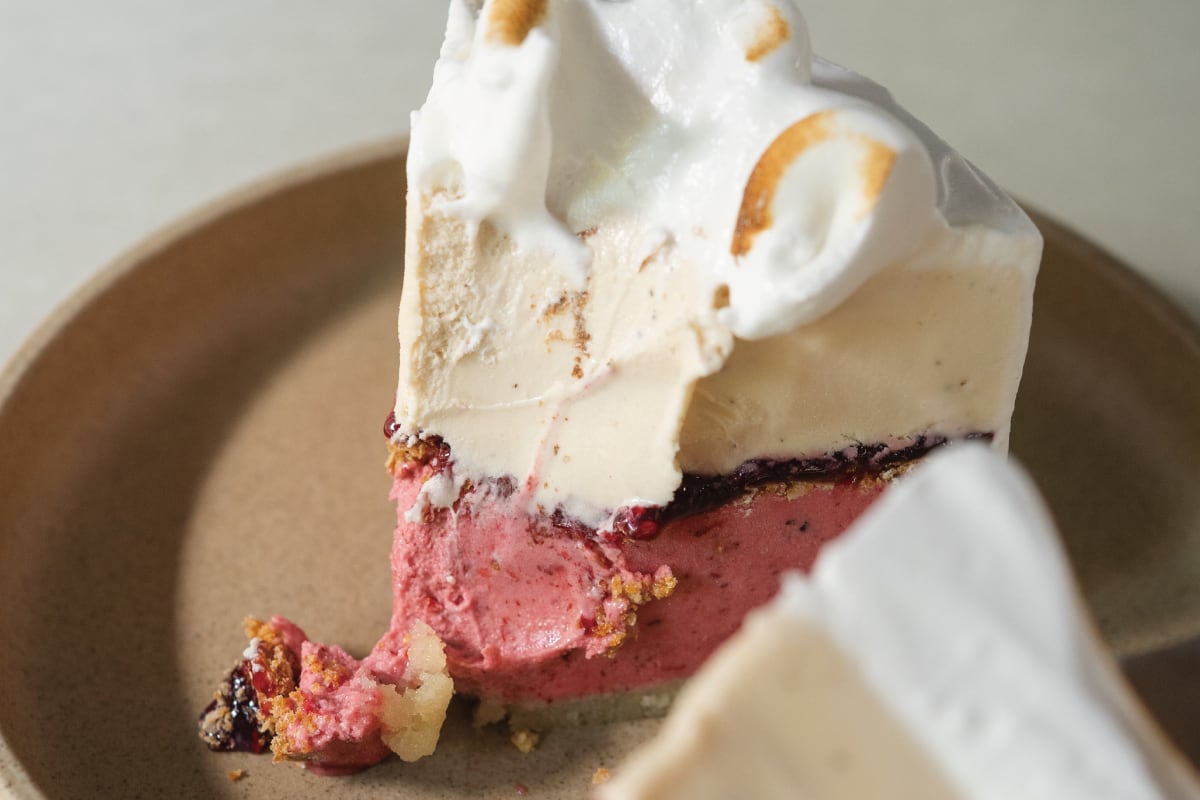 asatteのクリスマスジェラートケーキは、お店でダブルジェラートを食べるときのように、2種のフレーバーのハーモニーをお楽しみいただけます。